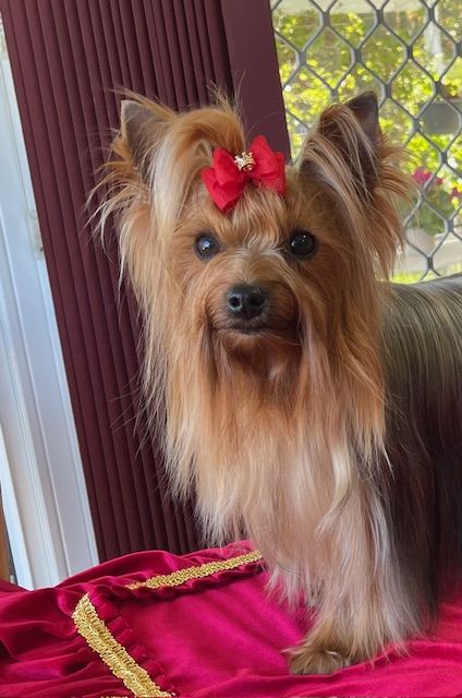 Not surprisingly, I found I could not live without a yorkie in my life and once more reached out to Maira's breeder, Sheena Turnock (Auchmuir) in England. She kindly agreed to send Auchmuir Audaciousness (Halli) to me. Halli is a full younger sister to Maira. Halli arrived on 24/8/25 and has settled in beautifully. She is a gorgeous little girl, the epitome of what a yorkie should be. She may never get to the showring due to lack of opportunity, but she's a wonderful companion.