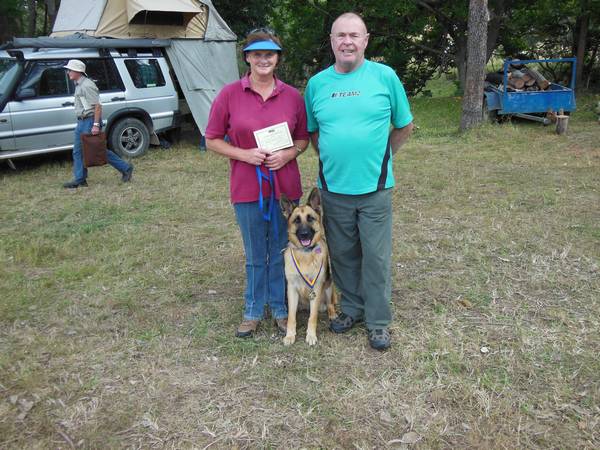 Sue McIntyre proud owner of. sapphy Debbar Unique Sapphire with tracking judge Ron Jackson