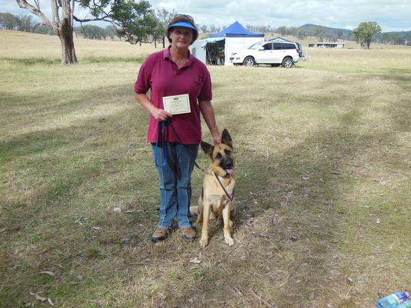Sue McIntyre with Sapphy obtained her CDX on Sat 8th March 2014 at Caboolture