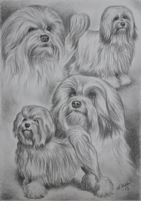 ** Lowchen breeders have discussed the fact that on the continent they don't want these dogs heavily scissored looking like a Poodle, and also they don't want a 'pom-pom' on the tail, you want a plume like the plume on the end of a lions tail. This is part of their characteristic.* This breed should never be shaped, sculpted or scissored or trimmed on the face.