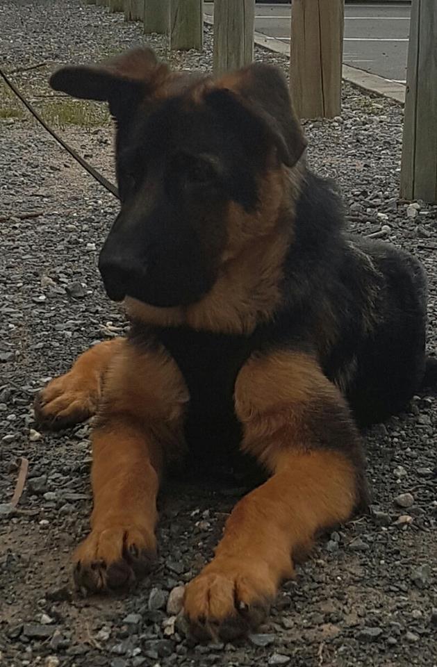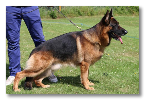 He is line bred 4-2 on the top producing dog, VA Quenn von Loherweg, so the predictibility of type is assured from this dog. He is totally free of Vegas du Haut Mansard and Remo vom Fichtenchlag.