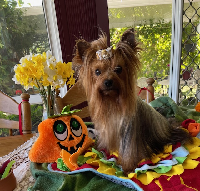 Not surprisingly, I found I could not live without a yorkie in my life and once more reached out to Maira's breeder, Sheena Turnock (Auchmuir) in England. She kindly agreed to send Auchmuir Audaciousness (Halli) to me. Halli is a full younger sister to Maira. Halli arrived on 24/8/25 and has settled in beautifully. She is a gorgeous little girl, the epitome of what a yorkie should be. She may never get to the showring due to lack of opportunity, but she's a wonderful companion.